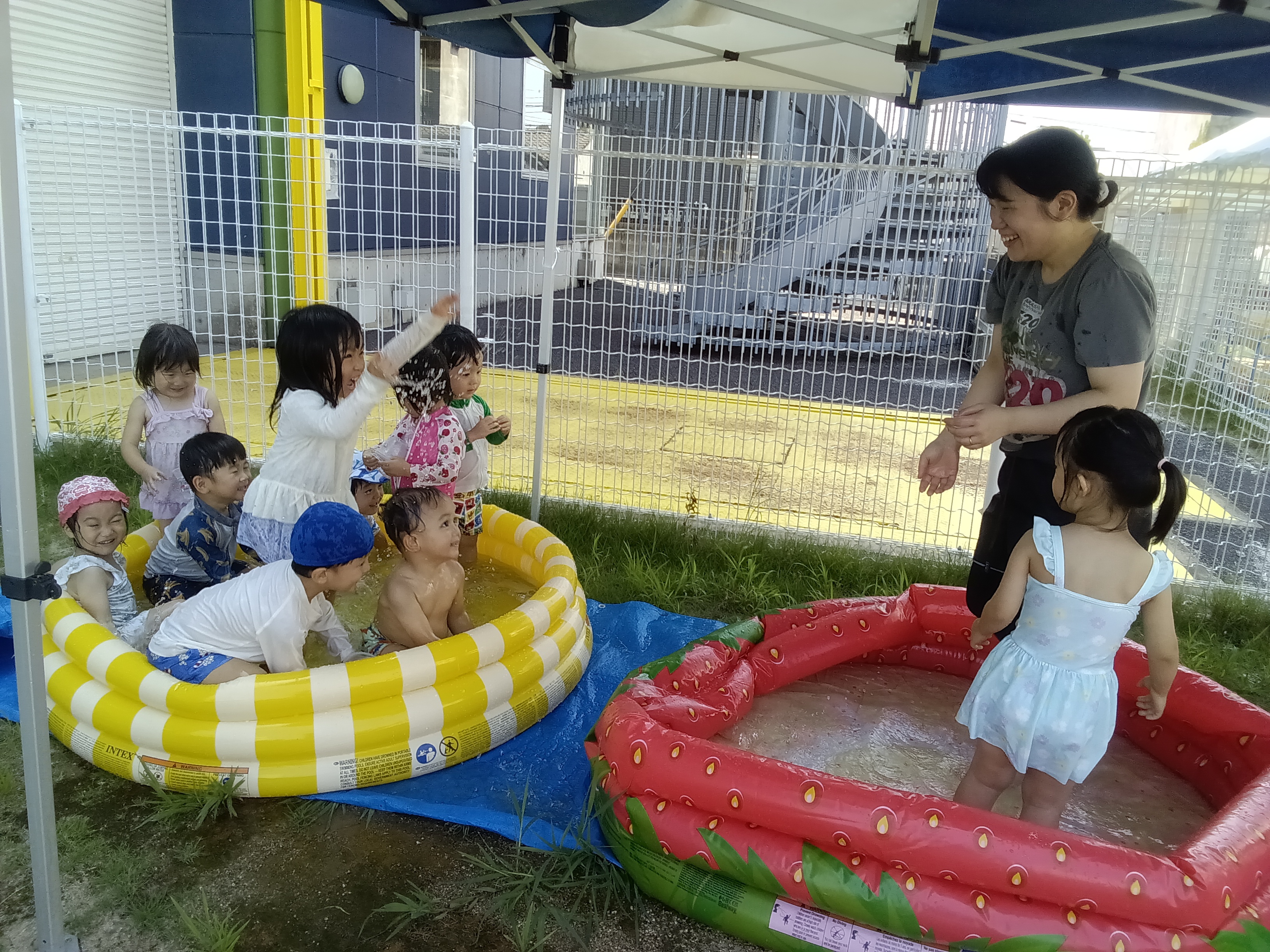 残暑に負けず、元気にプール遊びを楽しんでいます。
