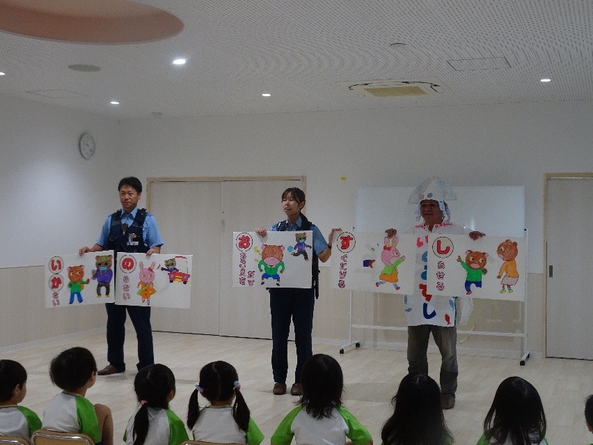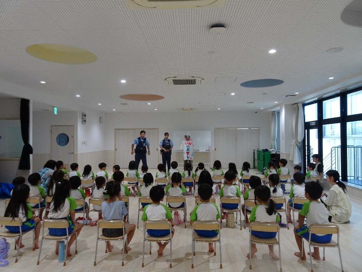 先日、3歳児4歳児5歳児が、警察の方から自分の身体を守るお話を聞きました。